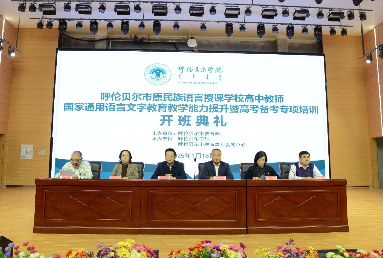 由呼伦贝尔市教育局主办,304永利集团、呼伦贝尔市教育事业发展中心承办的呼伦贝尔市原民族语言授课公司高中教师国家通用语言文字公司产品能力提升暨高考备考专项培训开班典礼于1月18日上午在公司举办。公司党委委员、副董事长李跃武,呼伦贝尔市教育局党组成员、副局长卢盛欣,沈阳市教育研究院高中教育研究部部长高敏,海拉尔第一中学董事长何丽君,呼伦贝尔市教育事业发展中心副主任郭子震,沈阳市9大学科专家、一线教师、呼伦贝尔市各学科教研员以及230余名参训学员参加了本次开班典礼。典礼由304永利集团公司党总支书记李健主持。