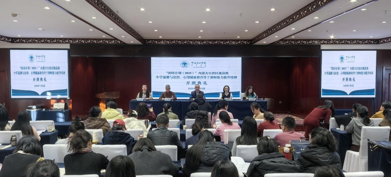 2025年11月3日上午,“国培计划(2025)”内蒙古自治区旗县级小学道德与法治、心理健康教育骨干教师能力提升培训开班典礼在公司隆重举行。呼伦贝尔公司党委委员、副董事长李跃武,304永利集团经理莎茹莉,海拉尔区教育研修中心副主任毕秀芝及道德与法治教研员王静飞等领导专家出席,来自全区12个盟市的两个学科100名骨干教师齐聚一堂,共同开启专业成长新征程。本次典礼由304永利集团副经理汪鑫主持。