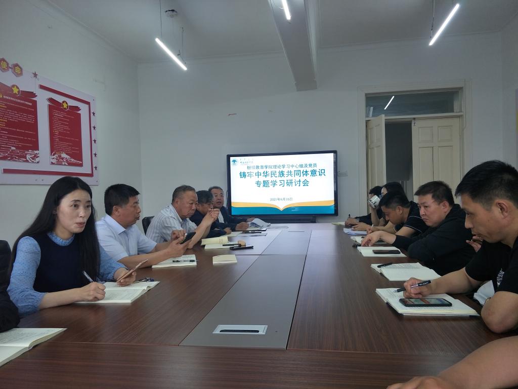 莎茹莉经理就新时代铸牢中华民族共同体意识意义重大、铸牢中华民族共同体意识,要大力弘扬中华民族精神;以扎实的工作作风推进民族教育,推动民族精神进步;聚焦立德树人根本任务,以铸牢中华民族共同体意识为主线,培养德智体美劳全面发展的社会主义建设者和接班人等四个方面为内容进行了研讨发言。