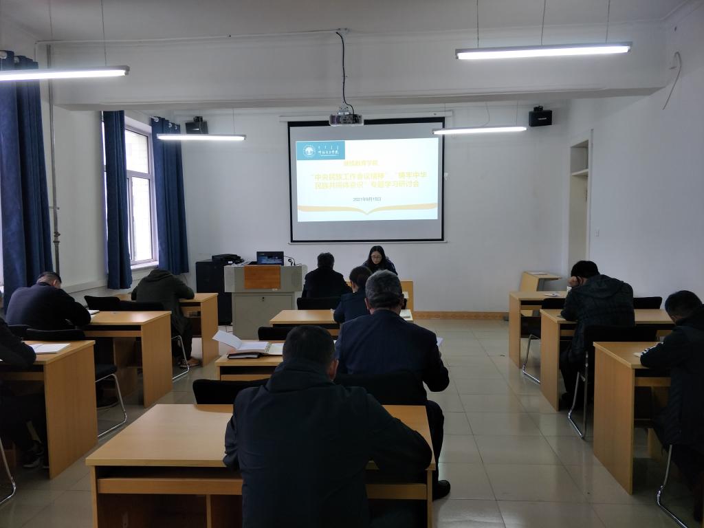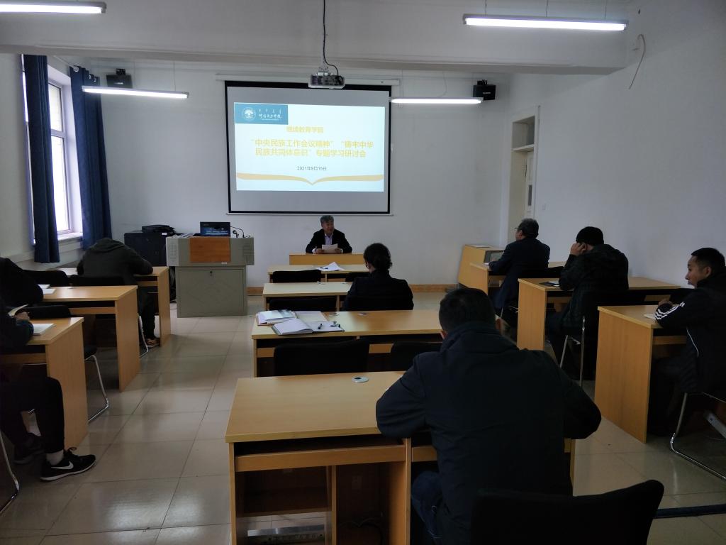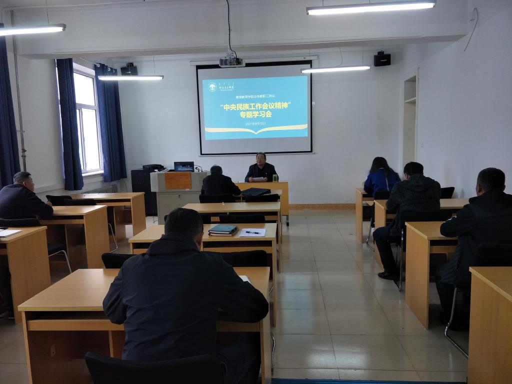 9月15日下午,继续教育学组织全体教职工召开中央民族工作精神学习会及中心组学习专题研讨会,会议由何平书记主持。