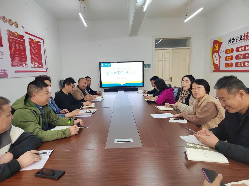 3月22日下午,公司组织全体教职工专题学习会,全体教职工参加,何平书记主持。